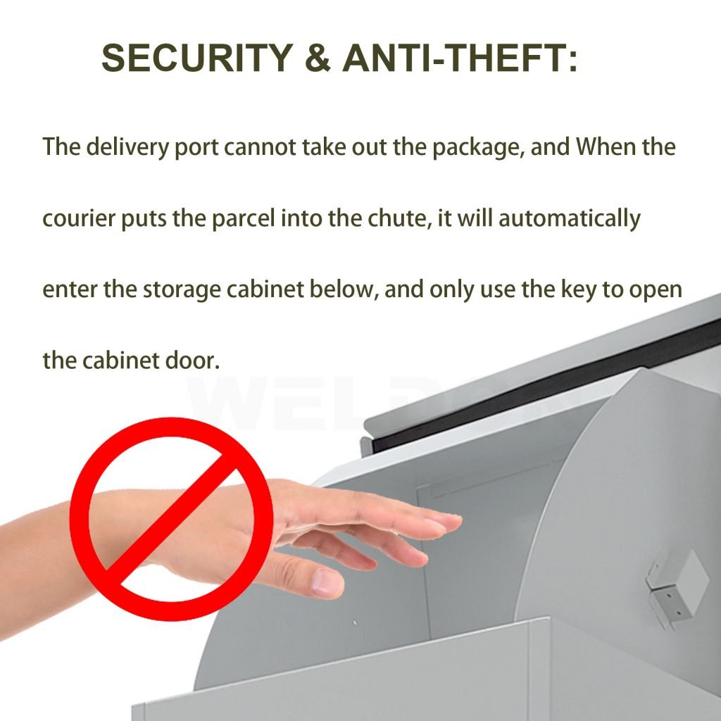 Anti-theft: The parcel box is equiped with code or keys lock, and metal cabinet body can both avoid stealing packages..
