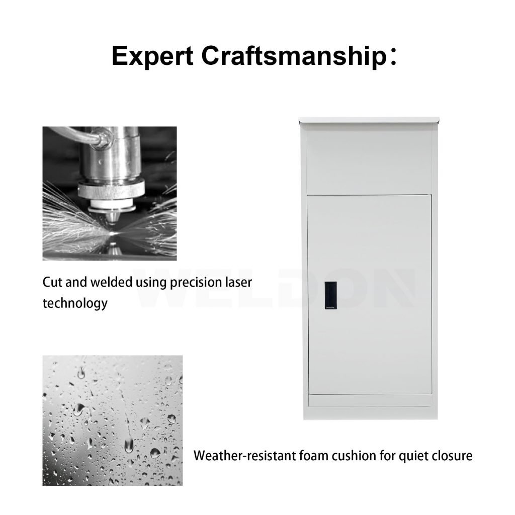Weatherproof: The parcel box is made of sturdy galvanized steel with a powder coating finish, which make parcel box corrosion-proof, and the anti-water struction against rain and wind.