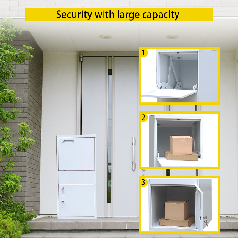 • Weatherproof: The parcel box is made of sturdy galvanized steel with a powder coating finish, which make parcel box corrosion-proof, and the anti-water struction against rain and wind.