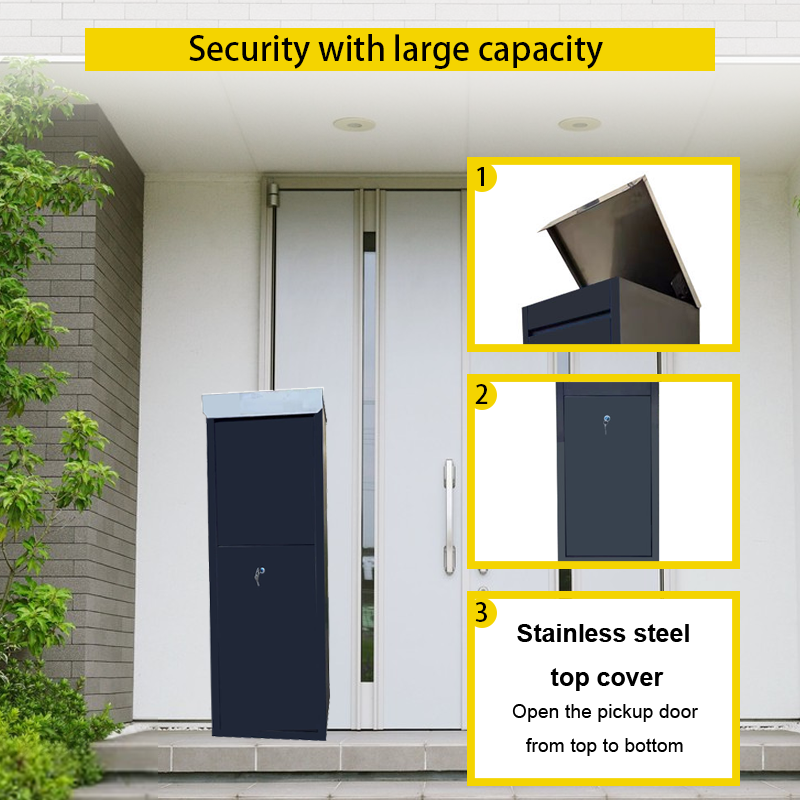 • Weatherproof: The parcel box is made of sturdy galvanized steel with a powder coating finish, which make parcel box corrosion-proof, and the anti-water struction against rain and wind.