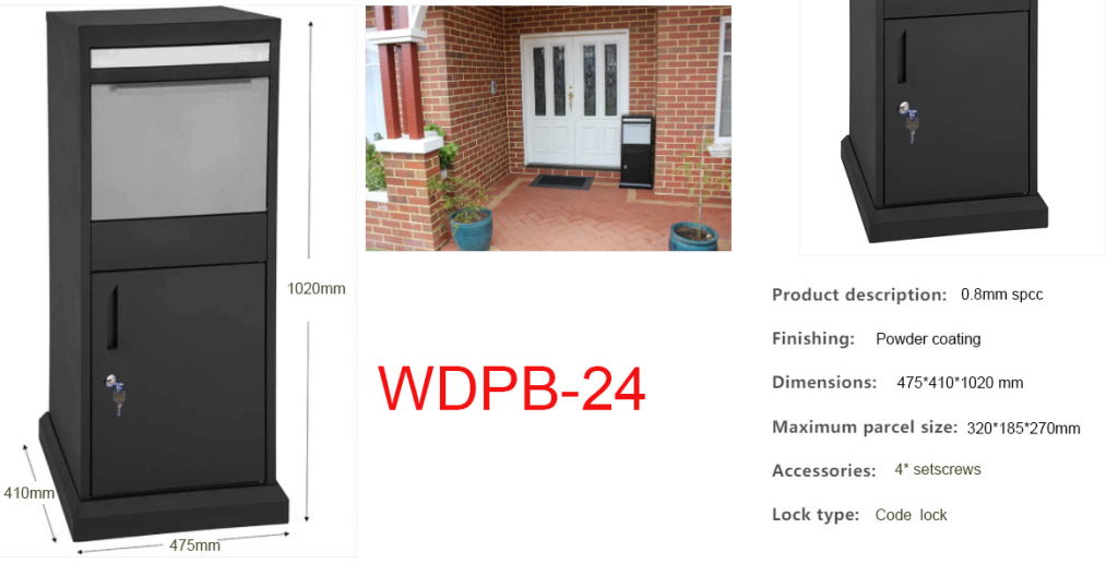 Weatherproof: The parcel box is made of sturdy galvanized steel with a powder coating finish, which make parcel box corrosion-proof, and the anti-water struction against rain and wind.