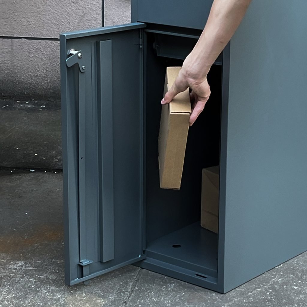 Weatherproof: The parcel box is made of sturdy galvanized steel with a powder coating finish, which make parcel box corrosion-proof, and the anti-water struction against rain and wind.