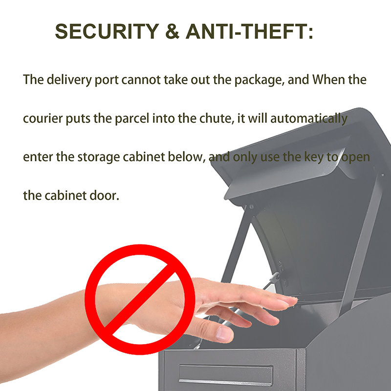 Anti-theft: The parcel box is equiped with code or keys lock and metal cabinet body together, can avoid stealing packages.
