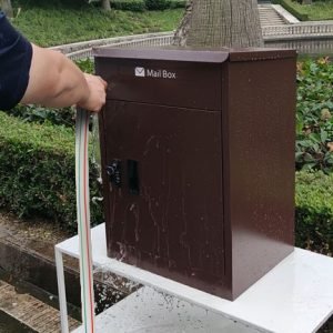 In order to reach waterproof, not only the structure is adjusted, but also the surface of the parcel box is additionally treated.Our surface treatment is powder coating.The surface-treated makes product more beautiful and can be selected in various colors, it also can effectively protect the internal metal sheet plate material, reduce the possibility of corrosion, and greatly extend the usage life of the product.